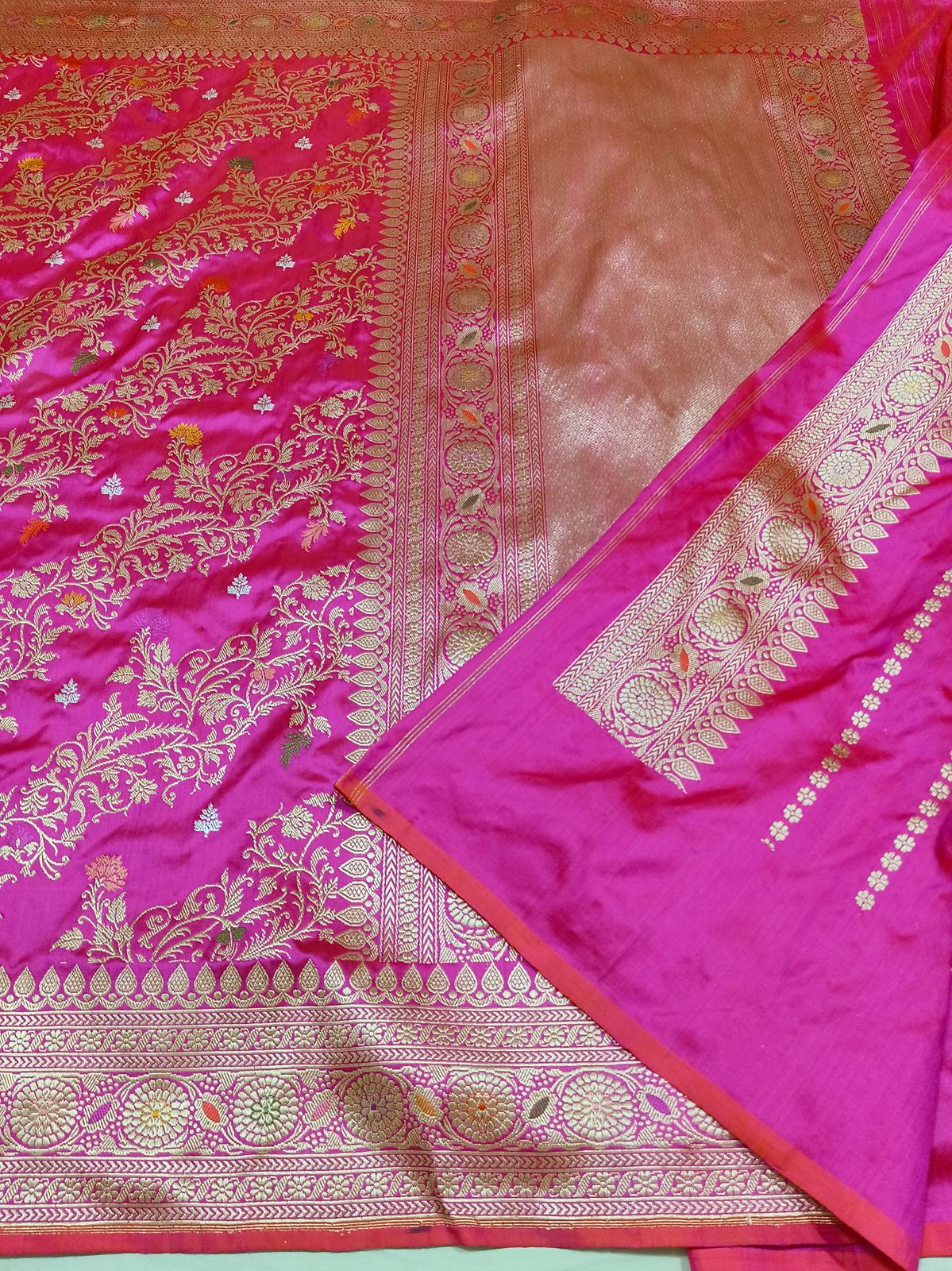 Handwoven pure katan silk kadhuwa weave Jangla Banarasi vibrant colour meena weave Saree with blouse pcs