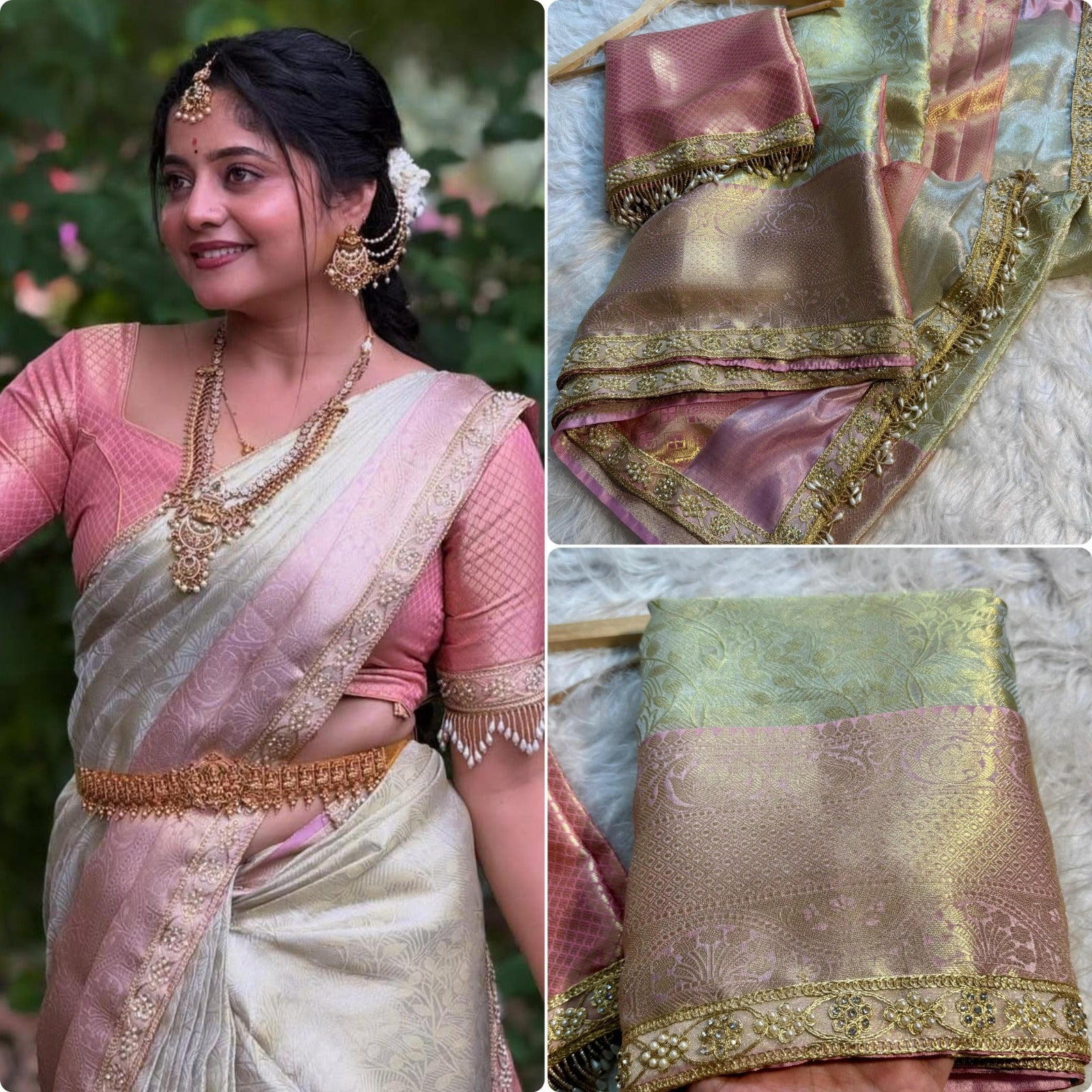 •⁠  ⁠Latest Banarasi soft tissue silk fabric