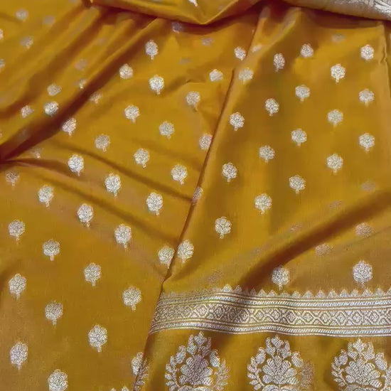 Beautiful Banarasi Mashru Silk Handloom Saree with pure zari weaving. This saree has a elegant shine. It’s lightweight, buttery soft, and drapes nicely — perfect for weddings and parties.