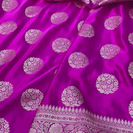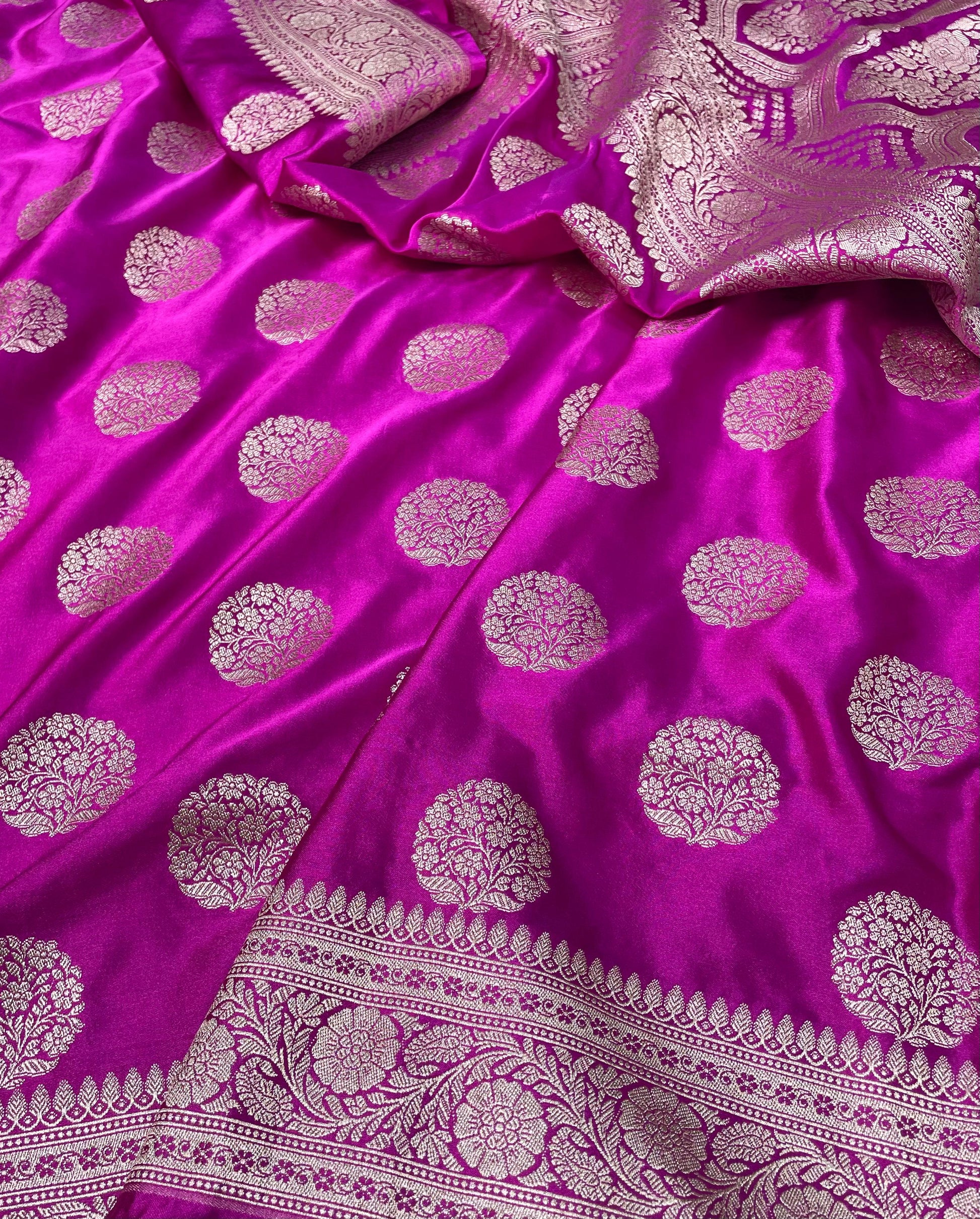 Beautiful Banarasi Mashru Silk Handloom Saree with pure zari weaving. This saree has a elegant shine. It’s lightweight, buttery soft, and drapes nicely — perfect for weddings and parties.