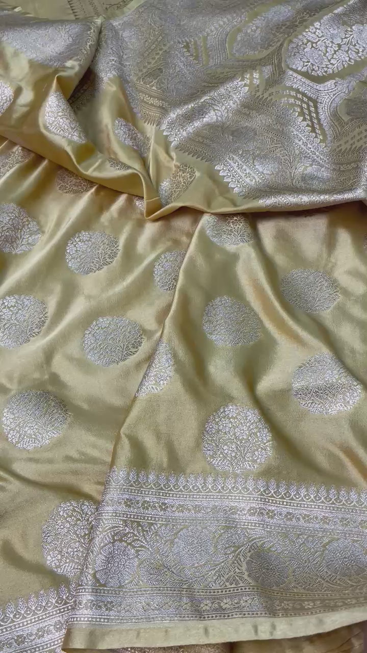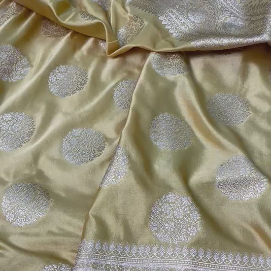 Beautiful Banarasi Mashru Silk Handloom Saree with pure zari weaving. This saree has a elegant shine. It’s lightweight, buttery soft, and drapes nicely — perfect for weddings and parties.