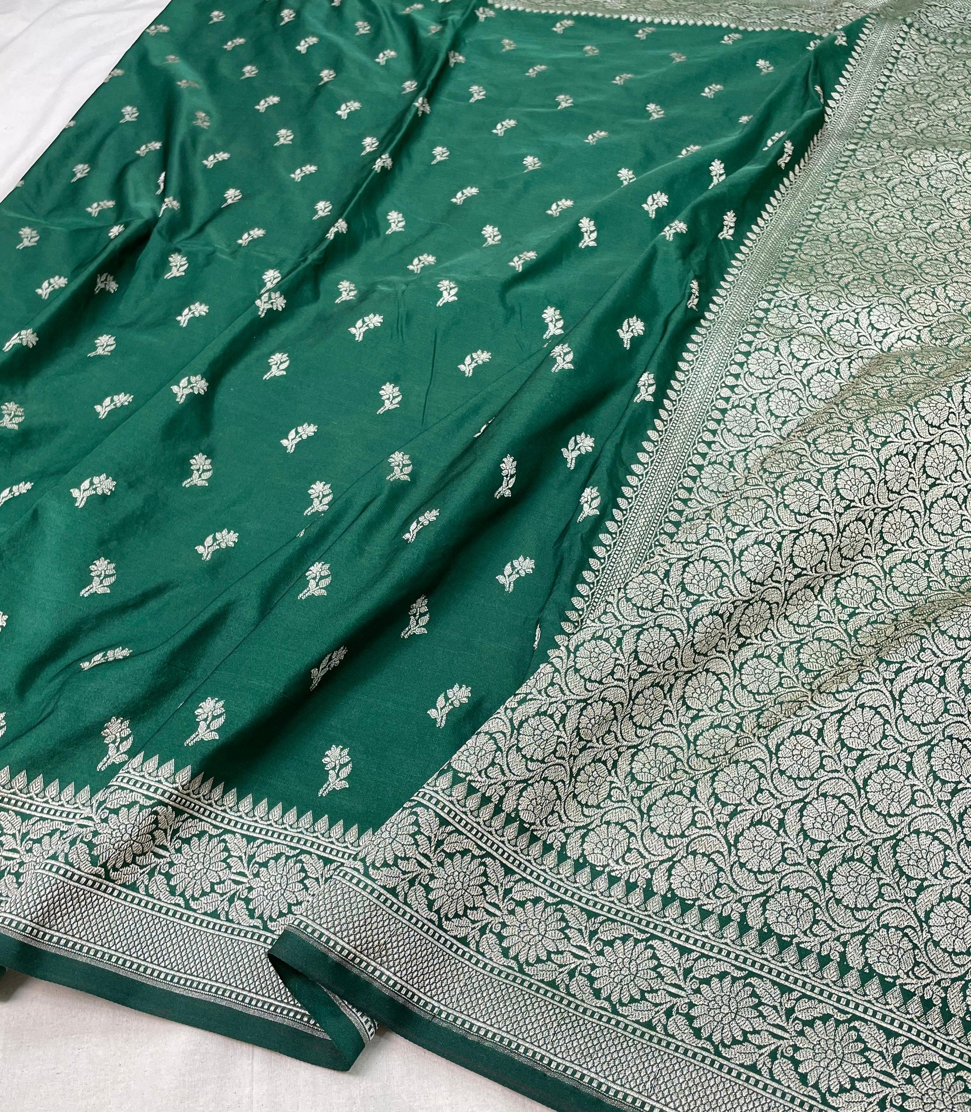 Beautiful Banarasi Mashru Silk Handloom Saree with pure zari weaving. This saree has a elegant shine. It’s lightweight, buttery soft, and drapes nicely — perfect for weddings and parties.