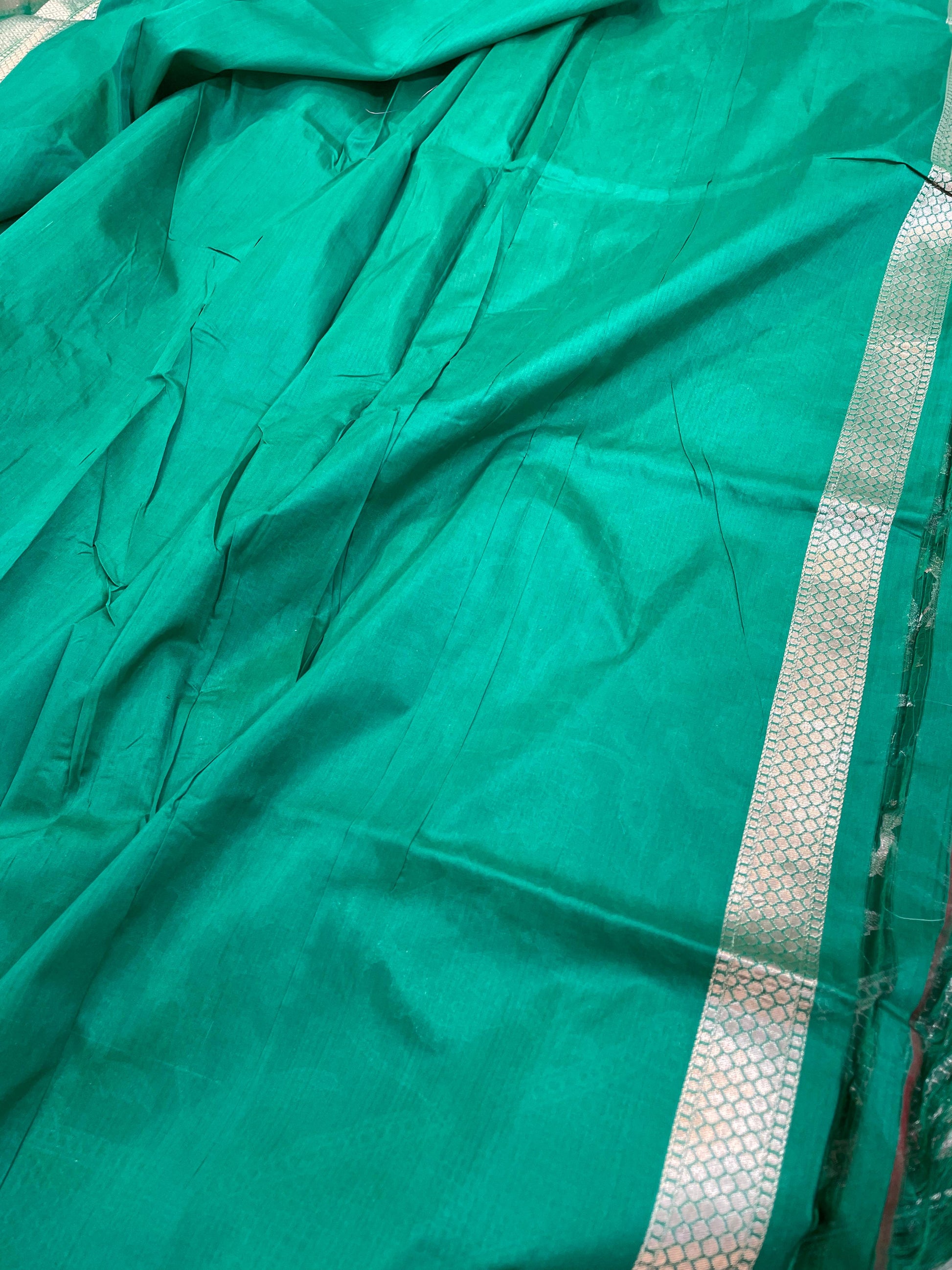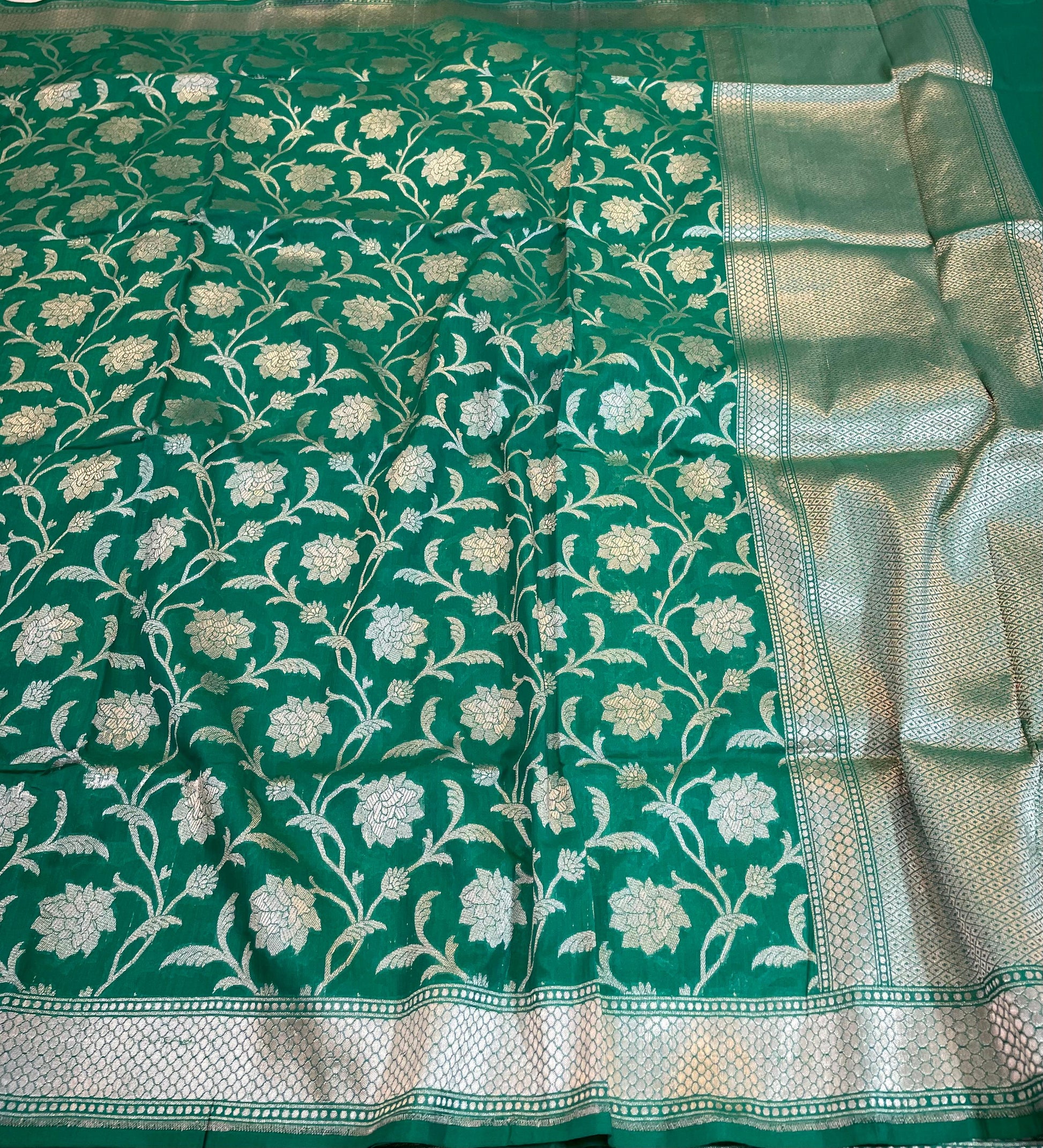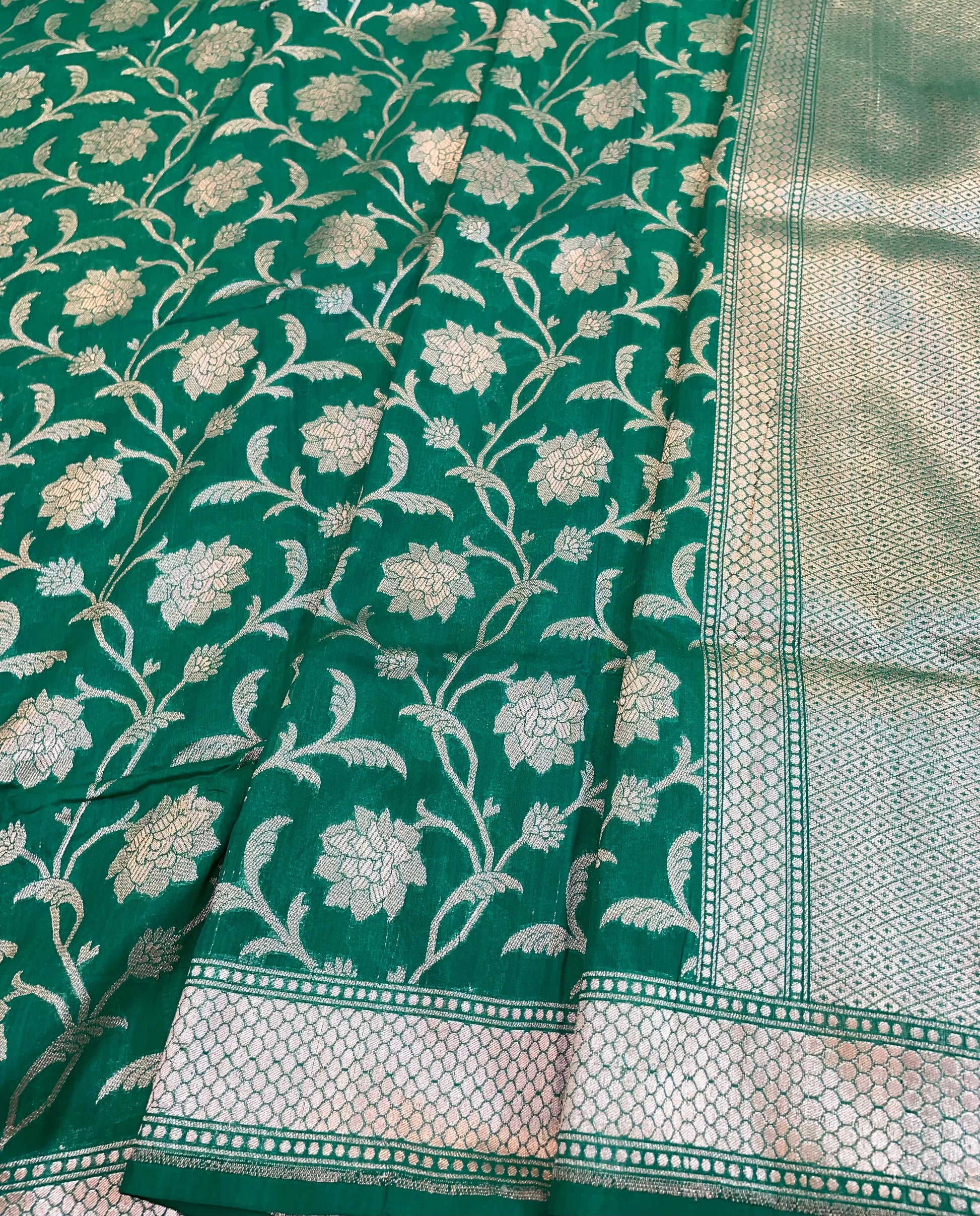 Pure banarasi dual warp katan tissue silk handloom saree, Cutwork Weave jaal design, golden  zari, Tilffi Paithani border n rich pallu with  blouse piece.
