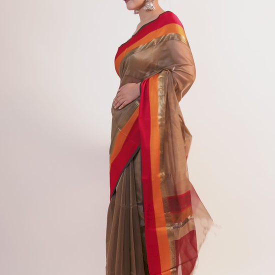 Maheshwari Handwoven Zari Border Sarees Size Length x Width: 6.3 meter x 46inches Blouse piece: Attached: 80 c.mMaterial 50% Silk - Warp || 50% cotton - Weft