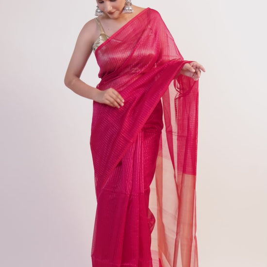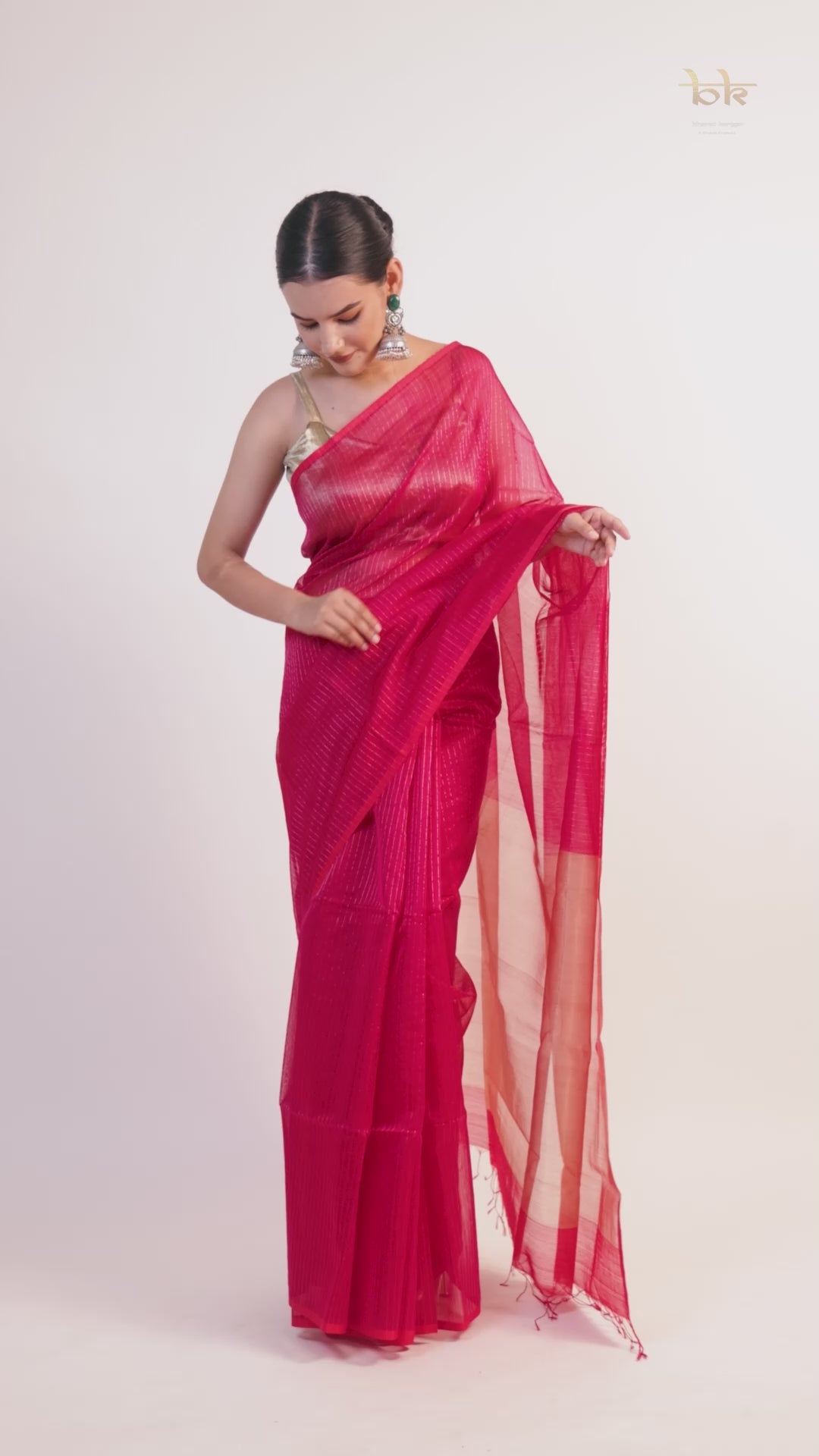 Maheshwari Handwoven Zari Border Sarees Size Length x Width: 6.3 meter x 46inches Blouse piece: Attached: 80 c.mMaterial 50% Silk - Warp || 50% cotton - Weft
