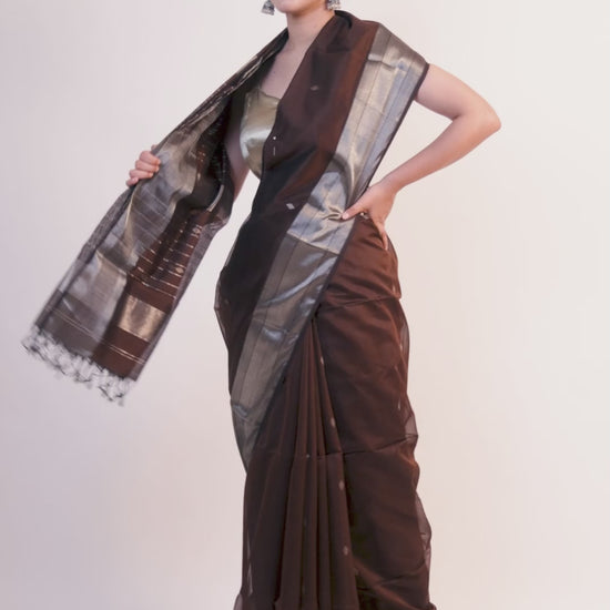 Maheshwari Handwoven Zari Border Sarees Size Length x Width: 6.3 meter x 46inches Blouse piece: Attached: 80 c.mMaterial 50% Silk - Warp || 50% cotton - Weft