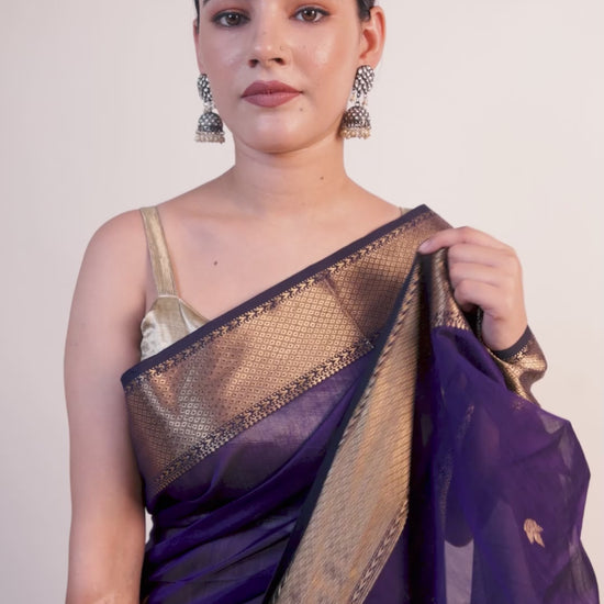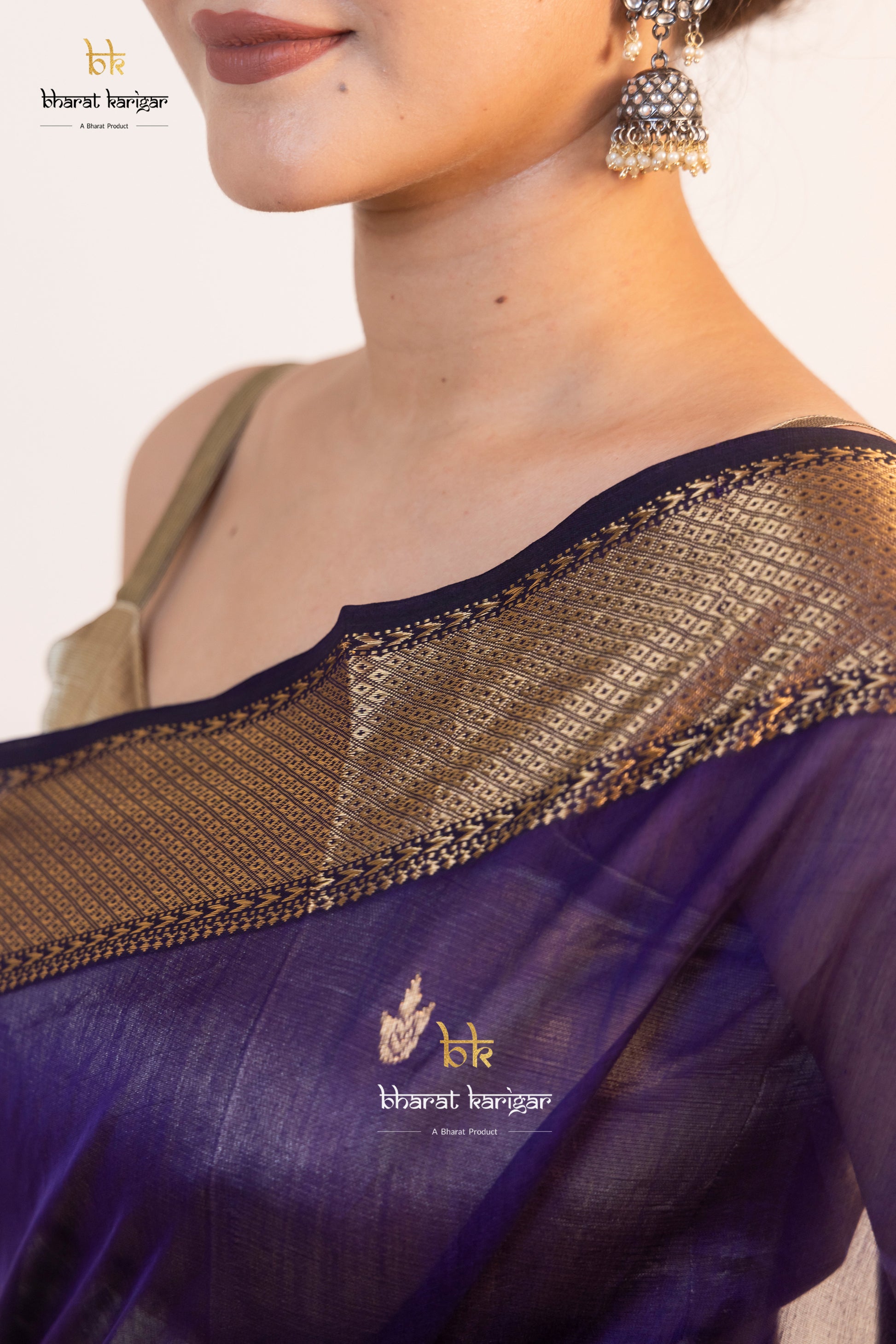 Maheshwari Handwoven Zari Border Sarees Size Length x Width: 6.3 meter x 46inches Blouse piece: Attached: 80 c.mMaterial 50% Silk - Warp || 50% cotton - Weft