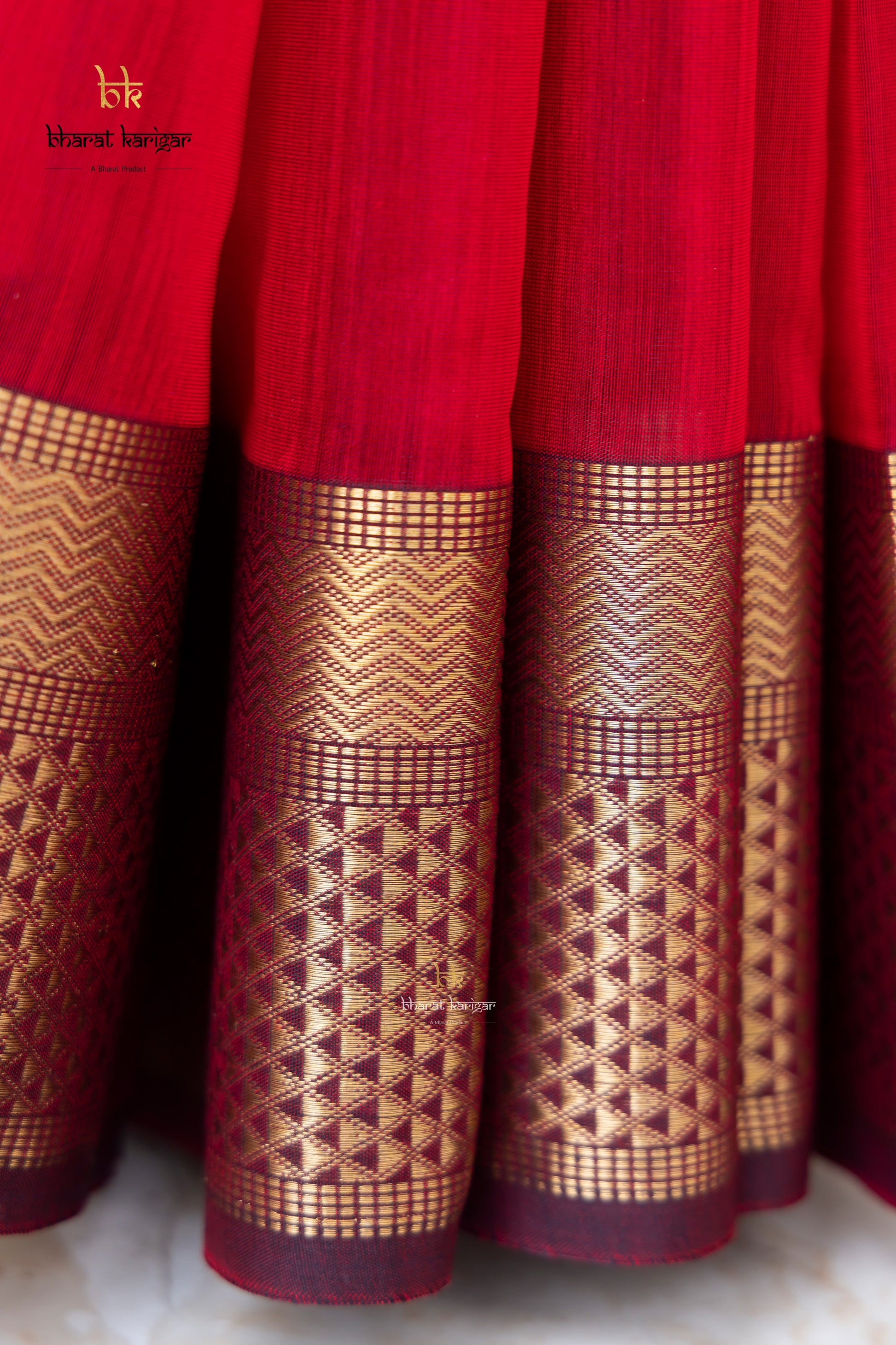 Maheshwari Handwoven Zari Border Sarees Size Length x Width: 6.3 meter x 46inches Blouse piece: Attached: 80 c.mMaterial 50% Silk - Warp || 50% cotton - Weft